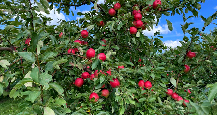 The Haralson apple is large, firm, and red. They are crisp and juicy, having a tart flavor. They’re great for eating, cooking, and are an excellent choice for baking pies and crisps.